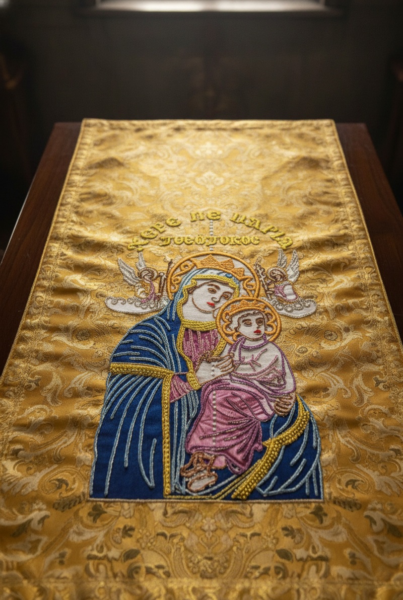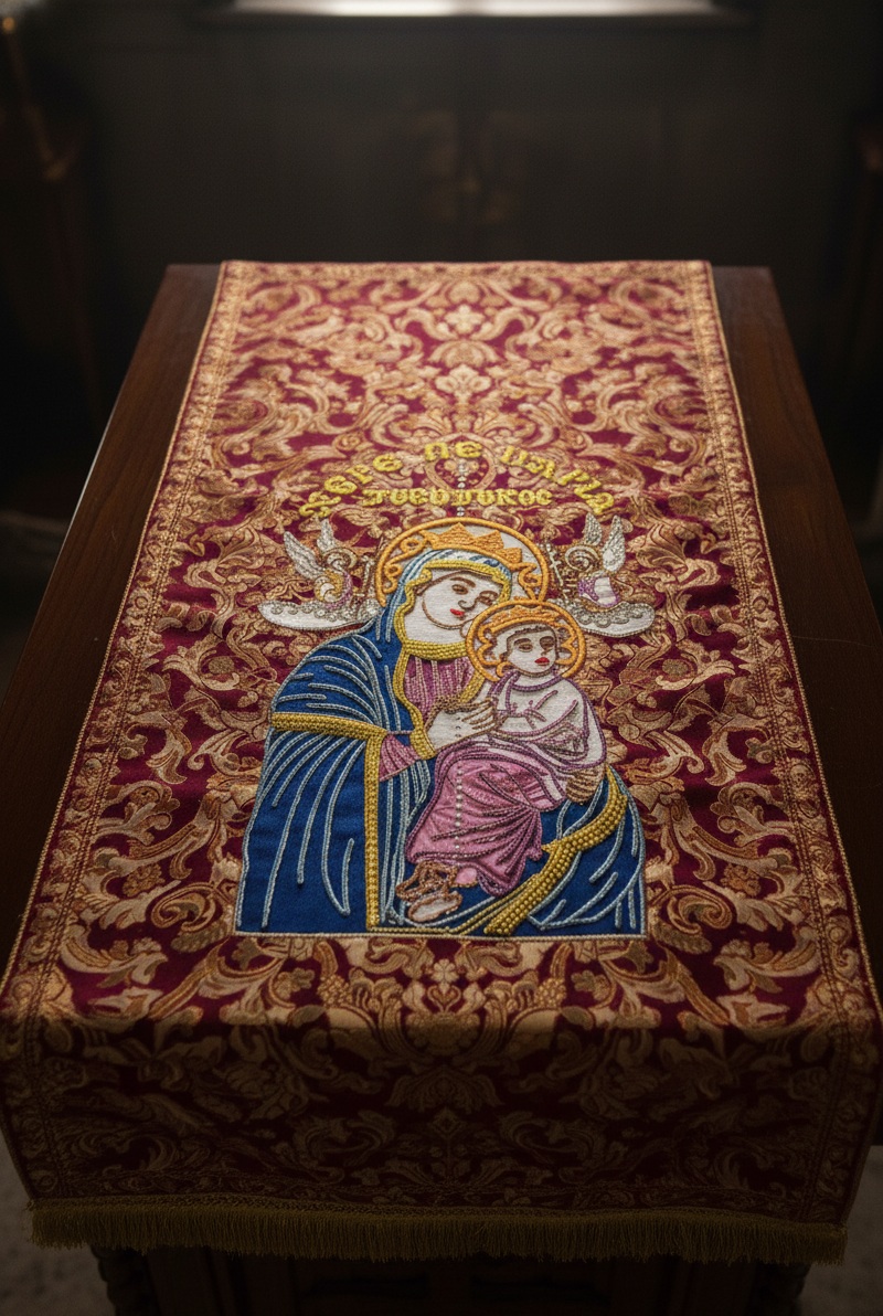 Crafted with reverence and elegance, this design beautifully captures the tenderness between the Blessed Virgin Mary and the Infant Jesus. Whether you’re creating a wall hanging, altar cloth, baptism gift, or a keepsake for a loved one, this piece brings peace and sacred charm to every setting.