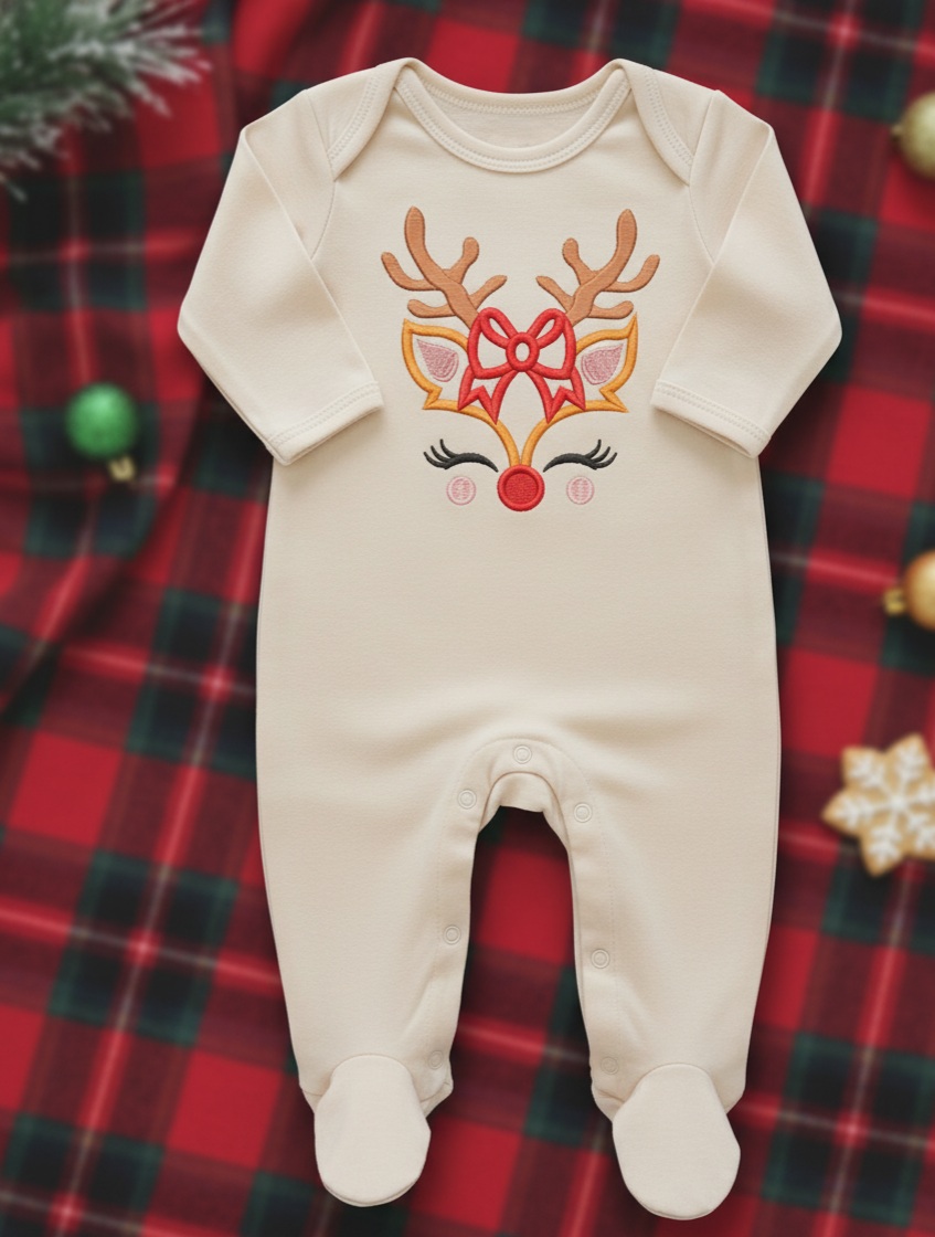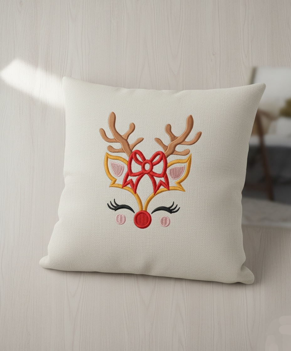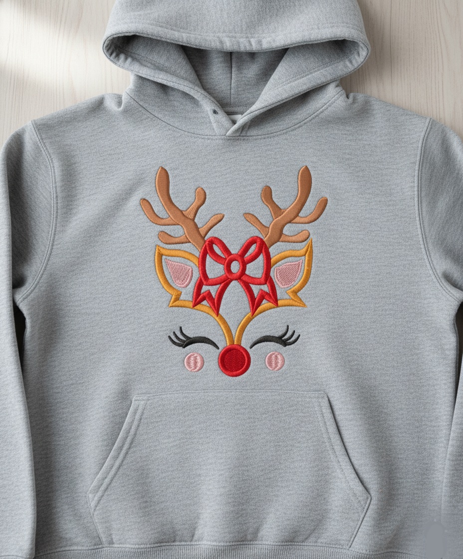 Snowy winter forest deer embroidery design